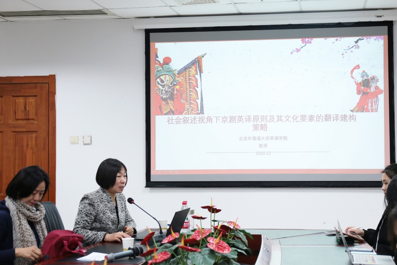 12月9日下午15点至17点,北京外国语大学彭萍教授应外文学院姜莉老师之邀,在coco漫画 后主楼1020会议室作了题为“社会叙述视角下京剧英译原则及文化要素的翻译建构策略”的讲座。