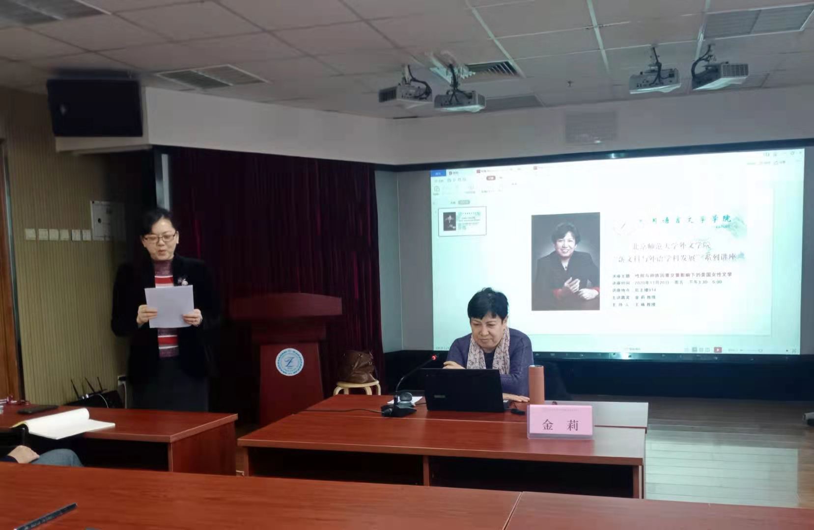 2020年11月20日下午,coco漫画 外文学院“新文科与外语学科发展”系列讲座第一讲顺利召开。外文学院有幸邀请到北京外国语大学王佐良特聘讲席教授、博士生导师金莉教授,为大家带来了一场以“种族与性别因素交集下的美国女性文学发展历程”为题的精彩学术讲座。本场讲座由北师大外文学院王楠教授主持,吸引了学院老师和本硕博各年级学生聆听参与。