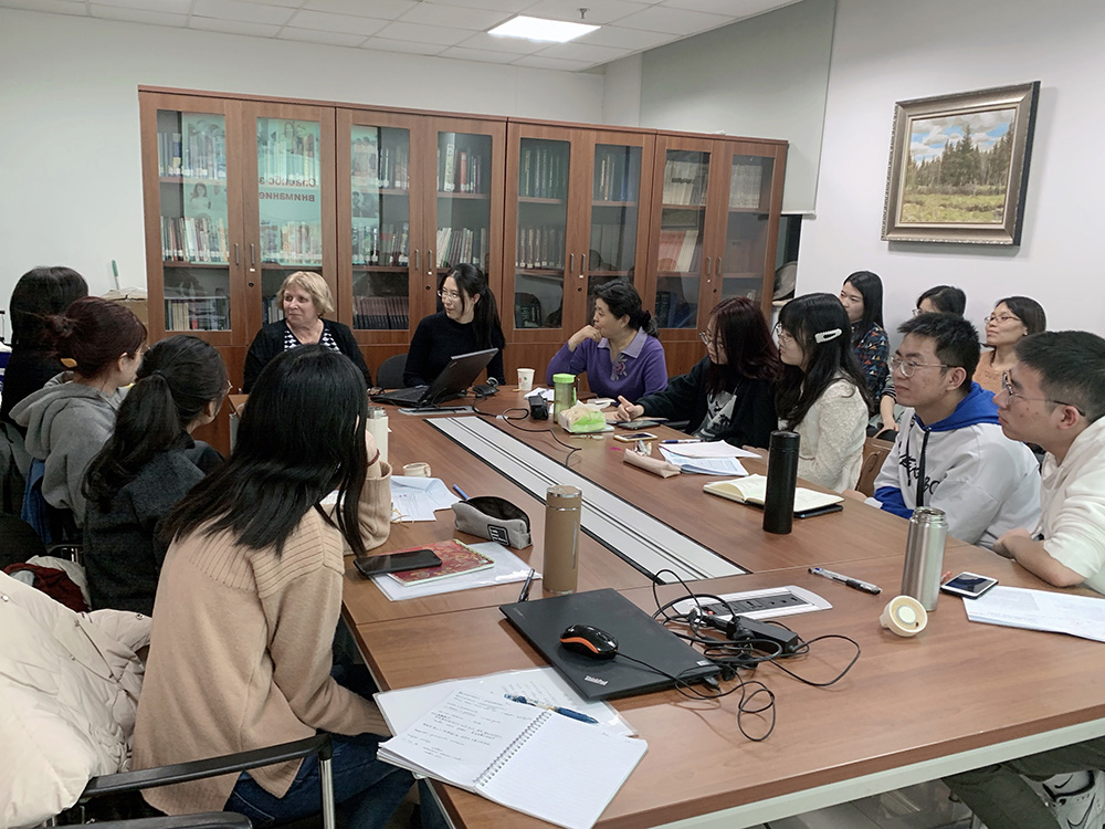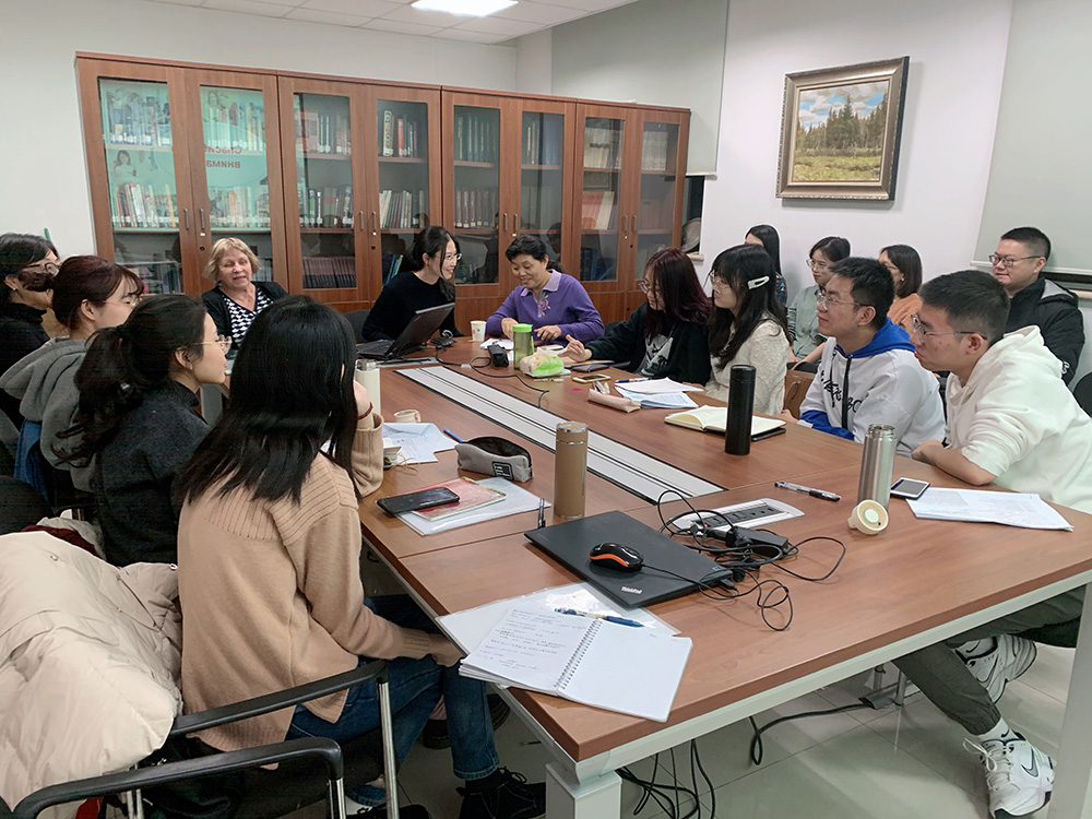 随后,波格丹诺娃-别格拉里扬教授向同学们展示了俄语日常口语中常见的,但同样不符合语法规范的成语、俗语以及先例文本的使用实例。她表示,在学习讲规范俄语的同时提高对日常俄语口语的理解是十分重要且必要的。同时,她也欢迎同学们以这一领域作为学术论文的切入点展开研究。