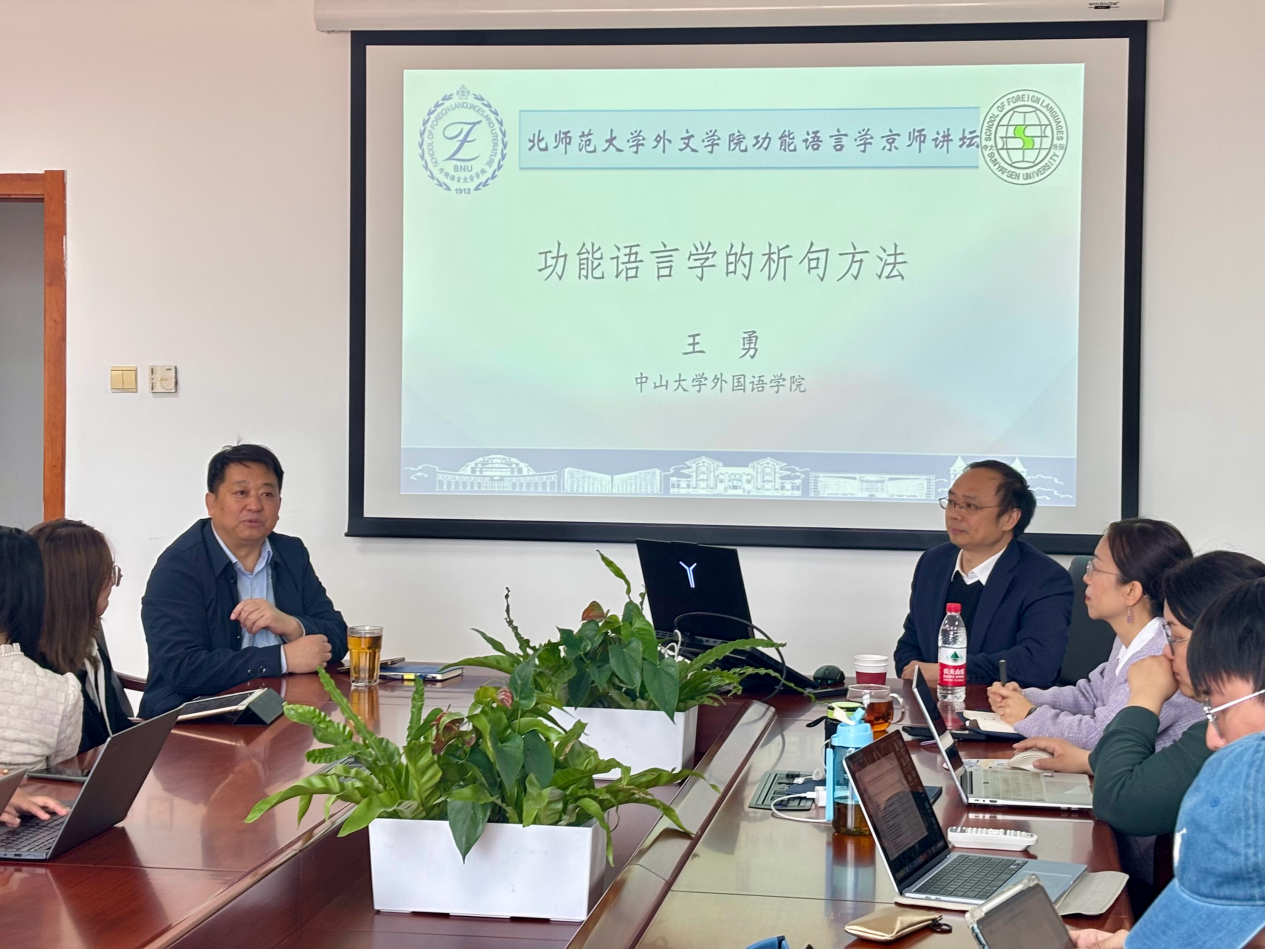 2025年3月21日,“功能语言学京师讲坛”第三十四讲顺利举行。本次讲座主题为“功能语言学的析句方法”,由中山大学外国语学院王勇教授主讲,苗兴伟院长主持,我院师生积极参与。