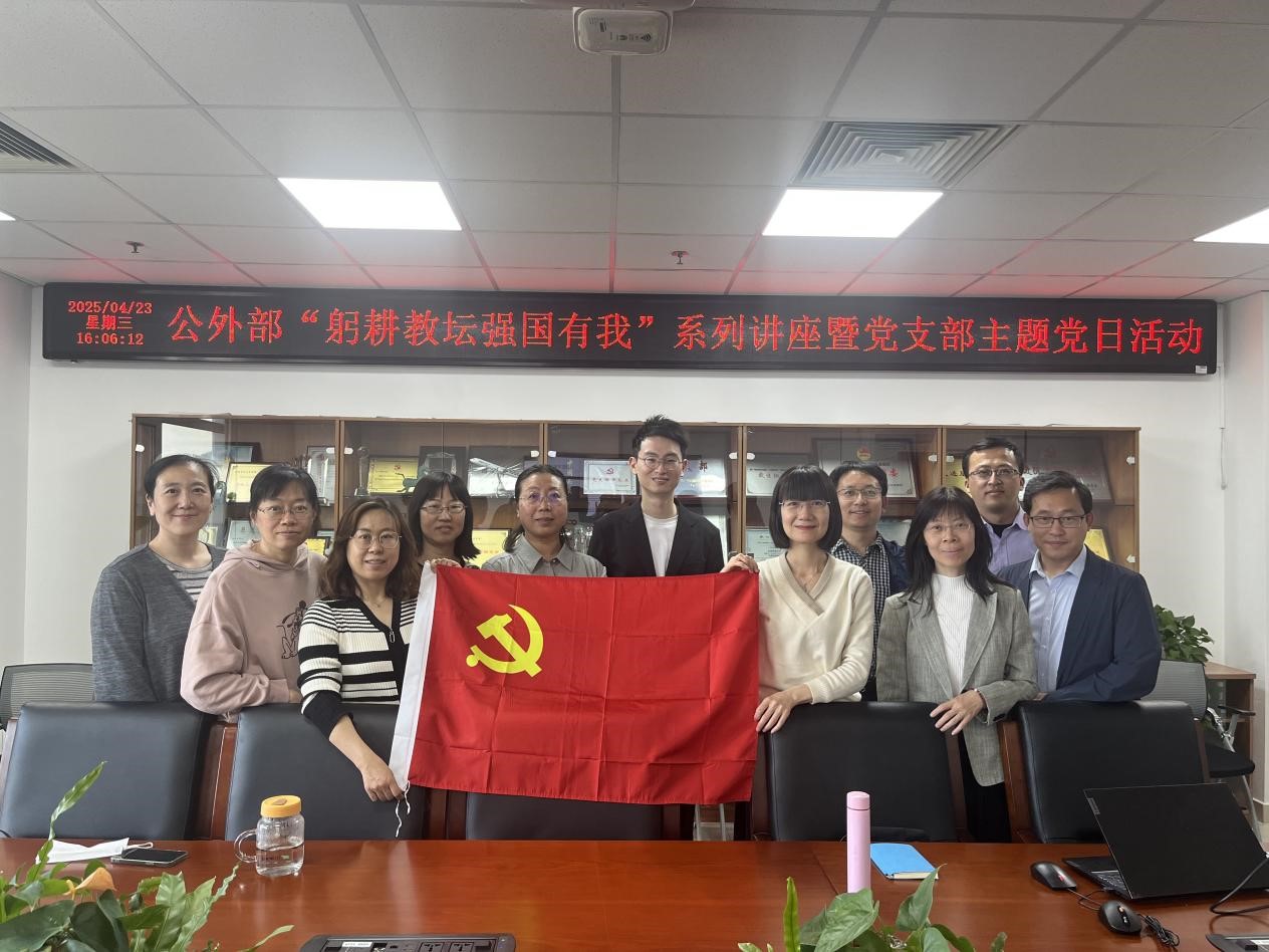 2025年4月23日下午,外文学院公外部在后主楼1020会议室成功举办“躬耕教坛强国有我”系列讲座暨主题党日活动。活动由公外部主任夏晓燕主持,教师代表共9人现场参与学习。
