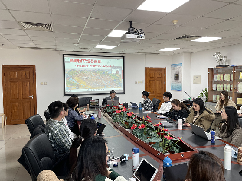 首先,国际日本文化研究中心特任助教光平有希老师做了题为《音乐中的日本形象:19世纪~20世纪初期西洋大众音乐所描绘的“日本”》的讲座。光平老师以19世纪初期之后西方各国日本题材的钢琴曲、乐谱等为材料,介绍了西方音乐中的日本形象的演变。随后,国际日本文化研究中心研究员石川肇老师做了题为《穿越时空游京都:“大正广重”吉田初三郎的鸟瞰图》的讲座。石川老师用轻松幽默的方式介绍了日本大正至昭和年间的画家吉田初三郎所绘的鸟瞰图。这些画是以京都为题材绘制的观光鸟瞰图,色彩艳丽,兼具导游的实用性和审美的艺术性。