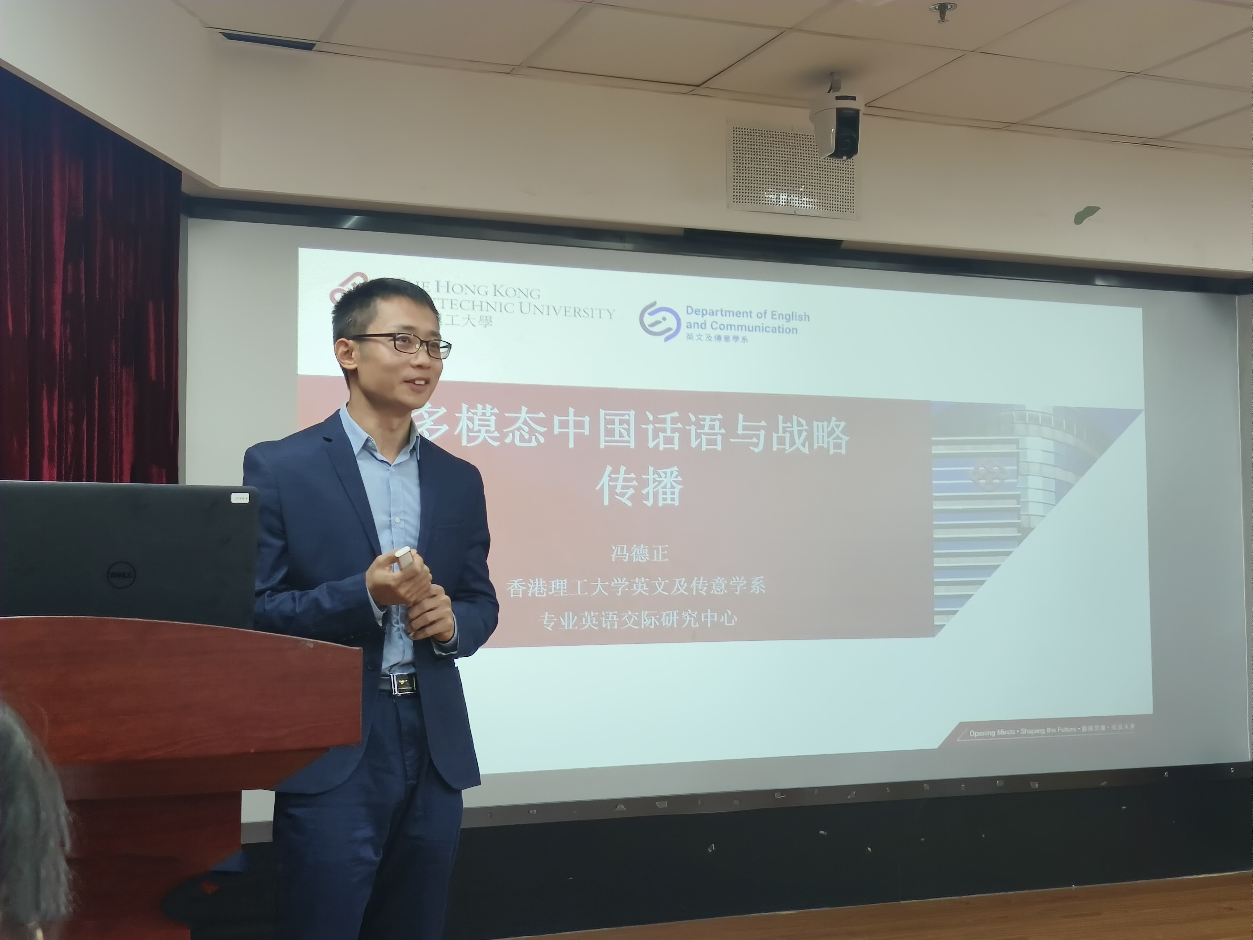 2023年10月13日上午,香港理工大学冯德正博士应邀为我校师生开展了学术前沿讲座“多模态中国话语与战略传播”。讲座由coco漫画 苗兴伟教授主持。