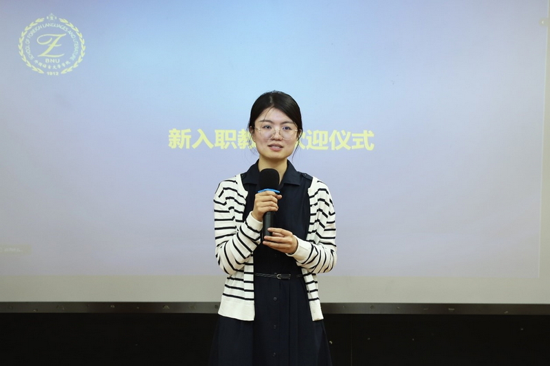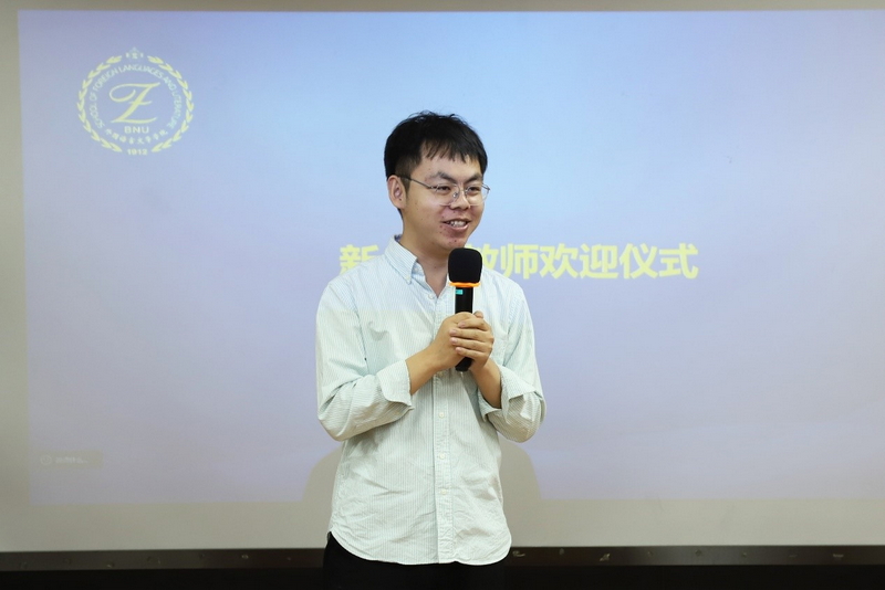 本次会议为2025年新入职教师举行了热烈的欢迎仪式。倪奥华、欧萌莲、孙引、杨启伟等四位教师依次自我介绍,并表达了对加入北师外文大家庭的欣喜,也纷纷表示要尽快提高教学科研能力和育人本领,为教师生涯奠定坚实基础。王楠、王德亮、孙晓慧代表学院老教师为新入职教师佩戴coco漫画