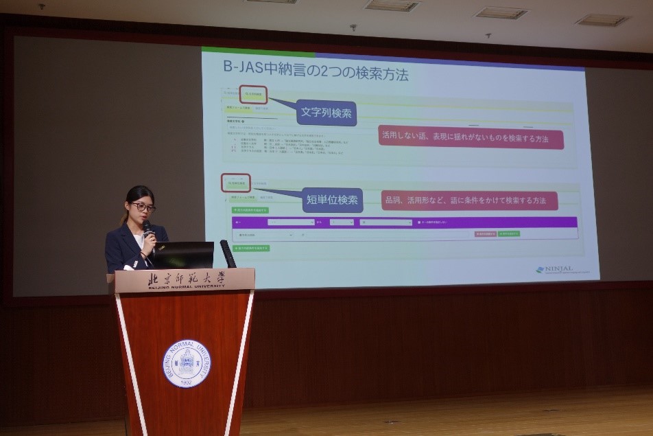 会议第三部分是“B-JAS使用讲习会”,由来自筑波大学的岩崎拓也老师率综合研究大学院大学须贺和香子、国立国语研究所吴楚琦共同完成。重点向参会者详细介绍了使用历时语料库分析日语学习者口语数据的方法,旨在提供实际操作技巧,以期帮助研究者更为有效地利用B-JAS语料库展开学术研究。