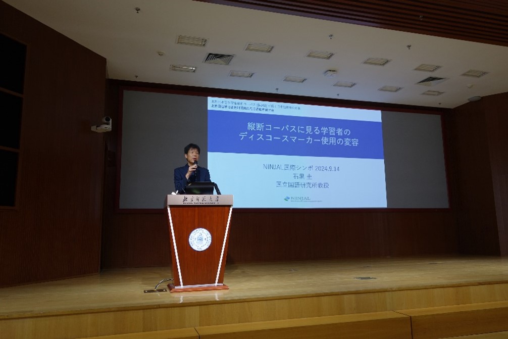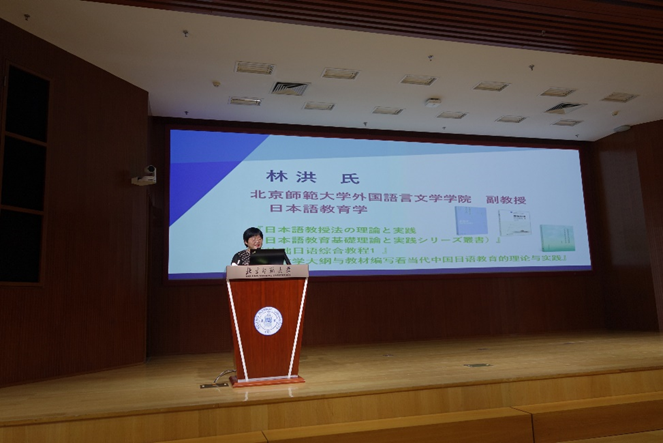 林洪副教授、北京外国语大学徐一平教授以及日本国立国语研究所迫田久美子教授。演讲内容既有对语料库中所体现的学生“成绩”的探讨,又有对日语学习者语料库的建设、应用及未来发展方向的期待,还有对学习者语料库在日语教育中的作用及潜在可能性的分析。第一部分由北京外国语大学日本学研究中心朱桂荣副教授主持。