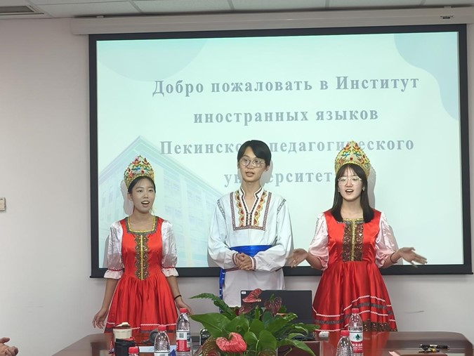 接着,俄文系学生代表带来了精彩的欢迎节目。同学们身着俄罗斯民族传统服饰,演唱了两首经典的俄罗斯民族歌曲,得到了在场师生的一致好评。