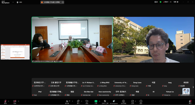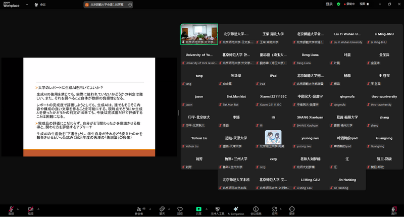 聘任仪式结束后,矢泽先生以《近代以降日本語表記に関わる三つのエポック——日本語仮名漢字変換システムと生成AIの二点を軸に——》为题,在追溯近代以来日语表记史上的三大事件后,针对如何将AI应用于教学与评价体系提出新见解。在问答环节,师生就AI时代的教学模式改革、翻译工作等问题与矢泽先生展开热烈讨论。该纪念讲座也是我院日文系、日语教育教学研究所主办的“日本学术界汉字研究的传统与新创”系列讲座第二讲,由日文系刘玲教授主持,包括复旦大学、北京航空航天大学、湖北大学和日本埼玉大学等在内十余所高校的师生线下、线上旁听了该次讲座。