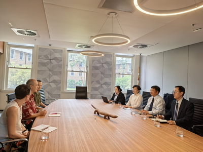 随后,代表团访问了悉尼大学,苗兴伟院长与悉尼大学中国研究中心主任David S. G. Goodman、艺术与社会科学学院赵晓寰教授、中国研究中心张艳萍女士等进行了座谈交流。苗兴伟与对方就中国文化外译、科研创新、学生学者交流交往等领域的合作进行了深入探讨。苗兴伟表示,希望通过本次出访推动我院与悉尼大学中国研究中心建立合作,进一步提升我院人才培养质量、拓宽国际交流和人才培养新路径。双方就加强学生联合培养、拓展科研合作等方面达成了共识。