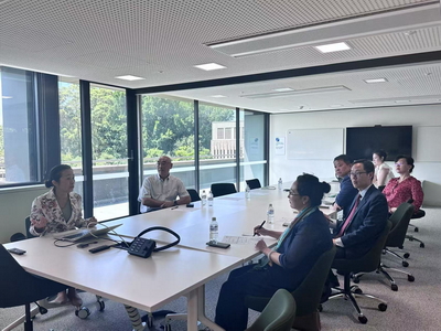 在澳大利亚访问期间,代表团首先访问了澳洲国立大学,苗兴伟院长一行与亚太学院副院长Ashley Schram副教授、文化历史语言系主任Matt Tomlinson教授进行了会谈,同时问候了就职于澳国立大学东亚研究院的我院优秀校友范圣宇博士。苗兴伟向对方介绍了我院近年来的办学成果和发展规划。Schram副教授介绍了亚太学院的研究方向和主要学科发展方向。苗兴伟一行欢迎澳洲国立大学与我院就师生交换或学术互访开展务实双赢的合作。澳洲国立大学对与我院开展广泛合作表示了极大的兴趣,以助力我院在国际舞台上更好地传播中国声音、展示我院风采。