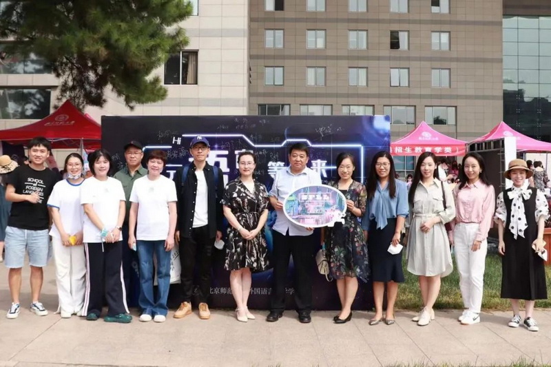 党支部的学生志愿者们拿着手牌欢迎初入校园的外文人,并将新生迎入京师广场;外文学院团委、学生会、coco漫画和研会的志愿者们,在京师广场的迎新点帮助新生完成报到工作,并将新生们送到宿舍楼下。