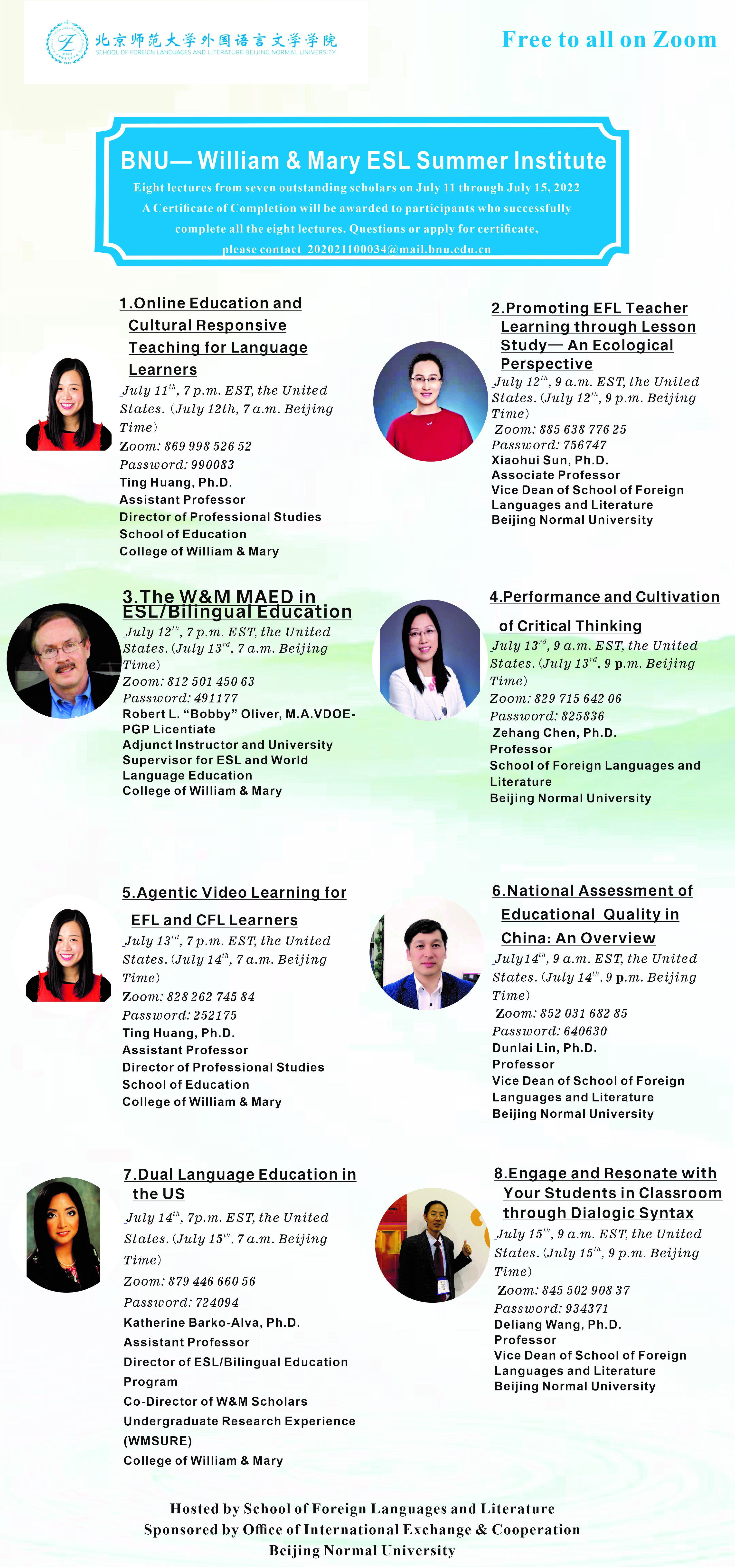 由coco漫画 和美国威廉玛丽大学教育学院合作举办的“北师大-威玛ESL暑期国际学堂”于2022年7月12日至15日成功在线上举办。