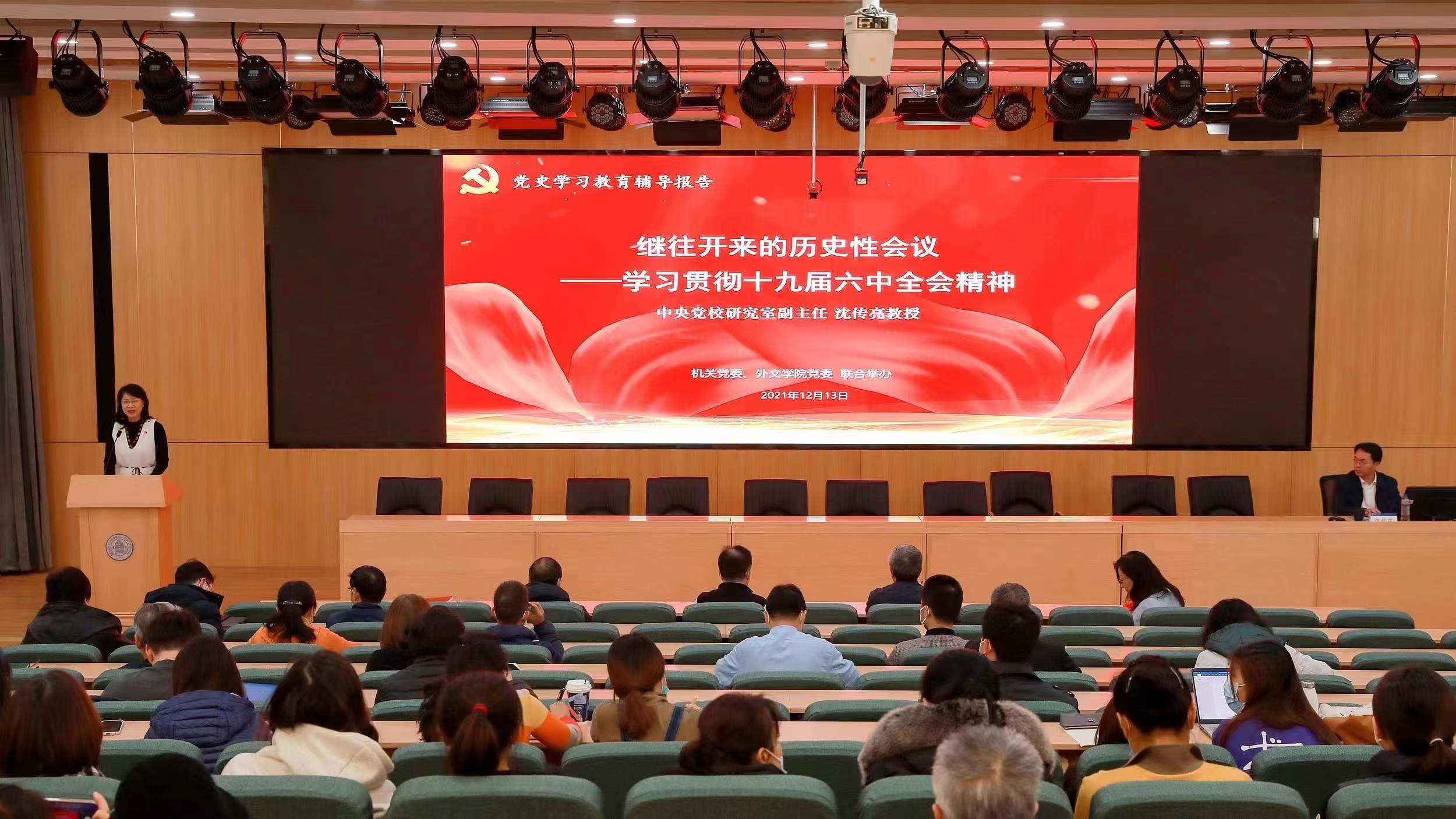 外文学院与机关党委联合举办学习贯彻十九届六中全会精神专题讲座2021-12-172021年12月13日下午,coco漫画 党委与机关党委联合举办了继往开来的历史性会议——学习贯彻十九届六中全会精神专题讲座。 -