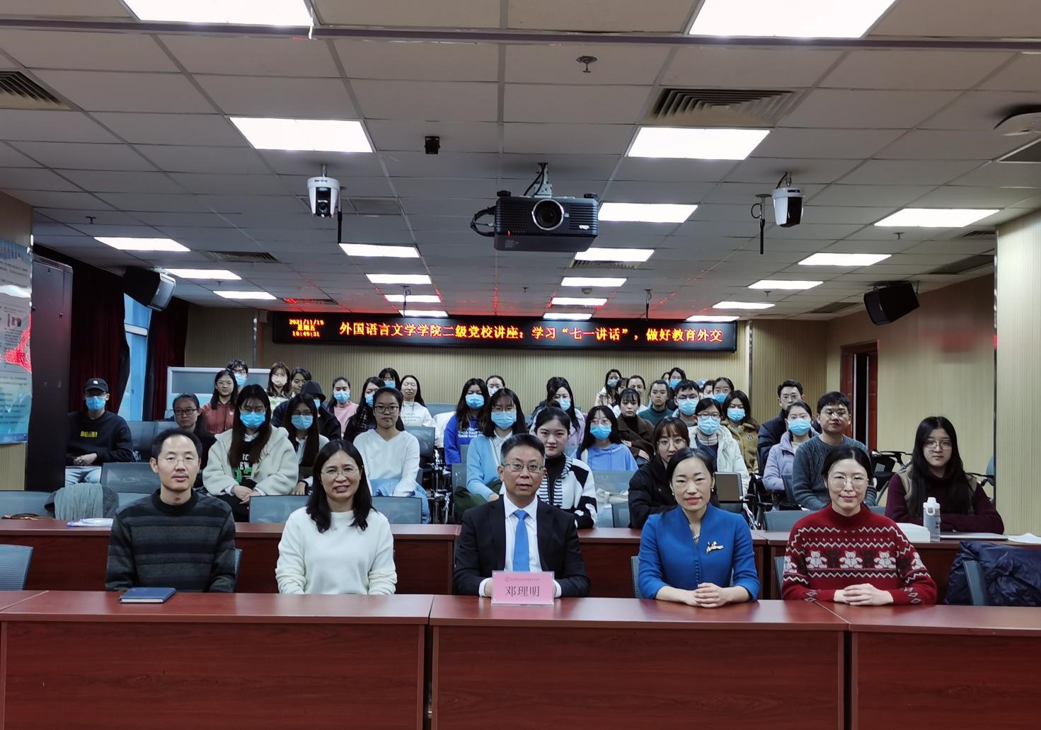 “学习七一讲话,做好教育外交”主题讲座成功举办2021-11-262021年11月19日下午,由外文学院二级党校主办的“学习七一讲话,做好教育外交”主题讲座于后主楼914会议室成功举办。 -